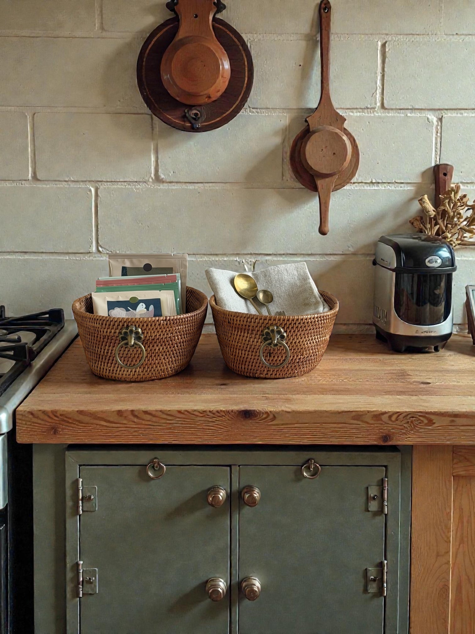 BAK-326SIN 真鍮取っ手楕円バスケット (無地•小花•W20×D8.5×H7)