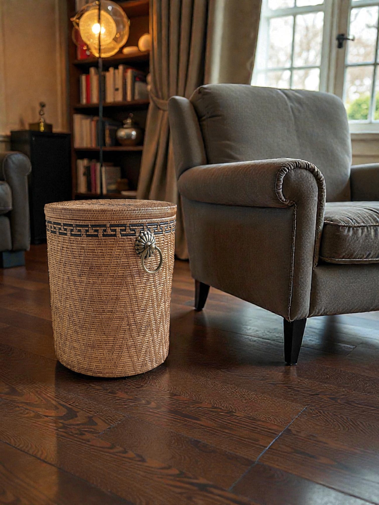 BAI-236SIN-M 真鍮取っ手蓋付き円柱バスケット(模様あり・φ30×H50)無料配送