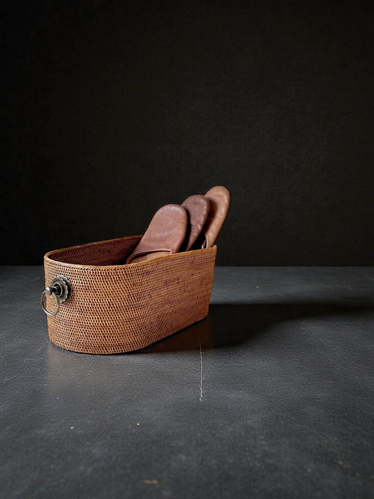 BAX-463 真鍮取っ手楕円バスケット (無地・W20xD15XH6.5)